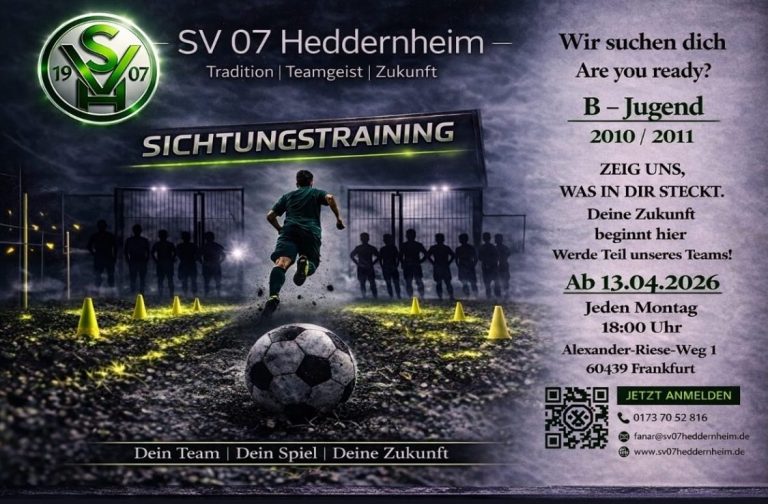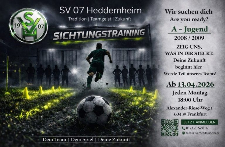 Geschäftsadresse: SV 07 Heddernheim e.V. / Postfach 550242 / 60401 Frankfurt am Main